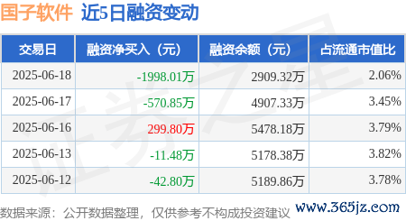 本站消息金鼎配资,6月18日,国子软件(872953)融资买入161.14万元,融资偿还2159.15万元,融资净卖出1998.01万元,融资余额2909.32万元。